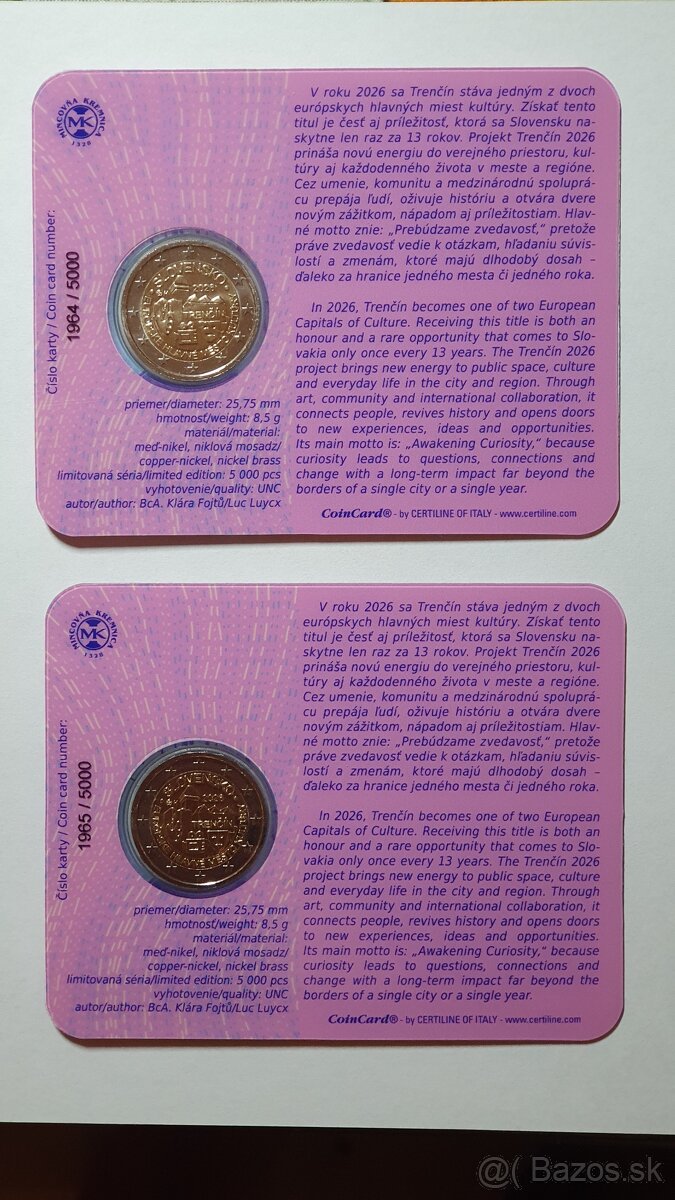 Prepustím 1ks 2€ Európske hlavné mesto kultúry 2026+coincard - [10.2. 2026]Predám 1ks 2€ Trenčín európske hlavné mesto kultúry 2026+coincard.