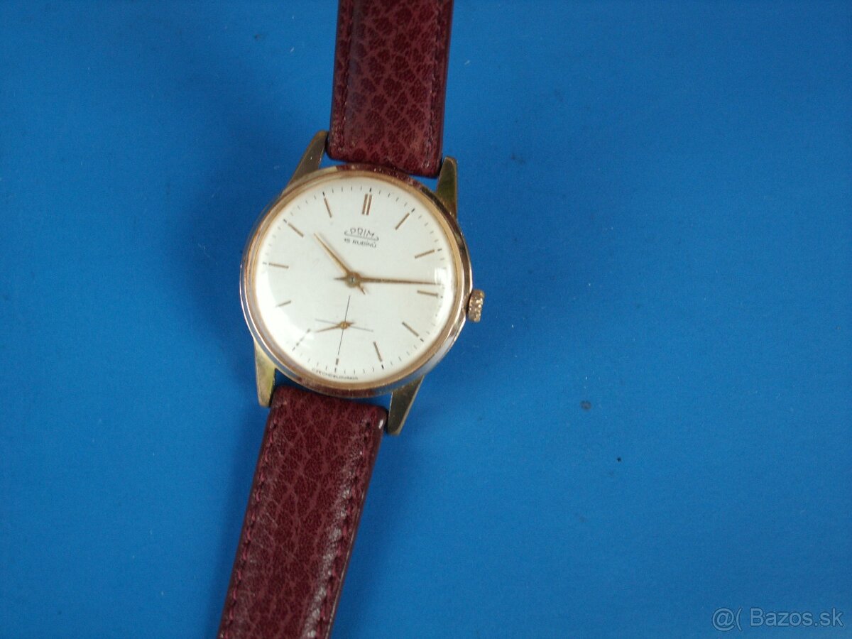 Predám staré hodinky Prim s pozláteným zahraničným púzdrom so skrutkovacím dnom vo veľmi peknom zachovalom stave, funkčné, nový kvalitný remienok. Cena 95 Eur.