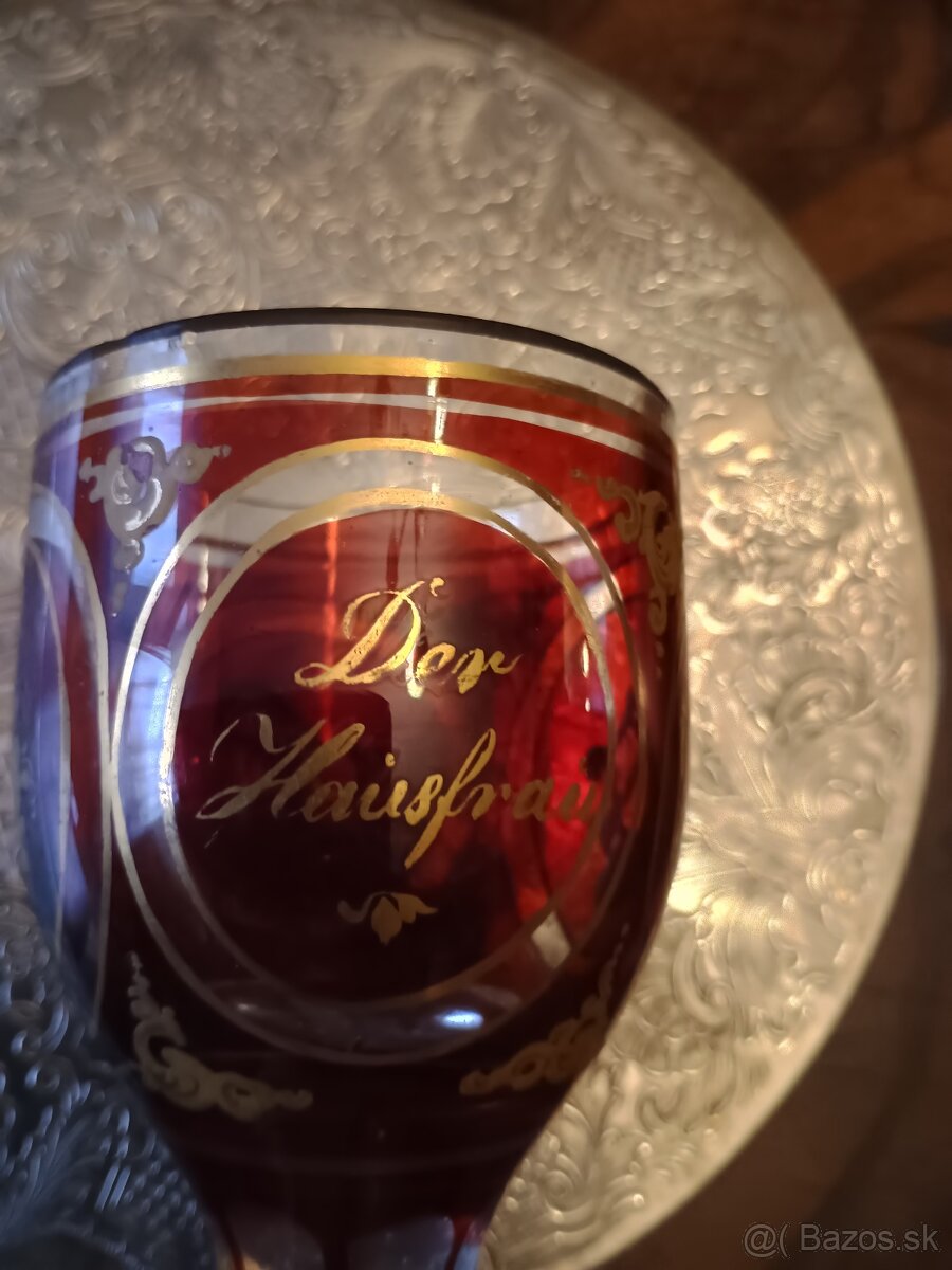 Pohár biedermeier 19stor.,rubínová lazura s brusenymi detailmi 13cm.