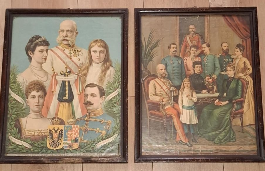 Predám dve originál litografie cisárskej rodiny FJI z obdobia RU. Stav s ohľadom na vek je pekný, farby sýte, drobné prasklinky. Rámy a rámovanie je pôvodné. Originalitu potvrdzuje na zadnej strane litografie aj pečiatka vydavateľa vojenských obrazov z Viedne (Johann Carl Jermý, I Currentgasse 12), nejde o kópie. Rozmer 35,5 x 45 cm. Uprednostním predaj spolu za cenu 130 eur. Kontaktujte ma správou, telefónne číslo je neplatné.