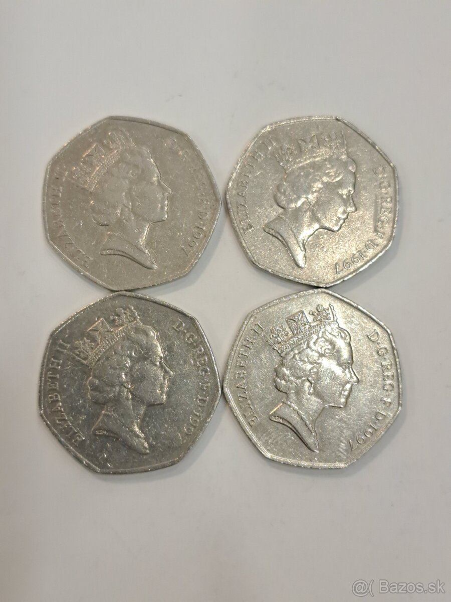 Ponúkam na predaj mince 50 pence 1997,cena za celok 20 euro, písať na email pozri ďalšie inzeráty.