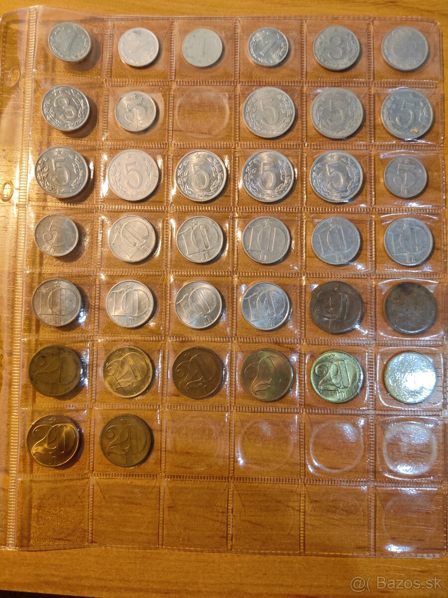 1halier 1953,55,57,86. 3halier 1953,54,63. 5halier 1953,54,62,63,72,74,75,76,78,79,91. 10hal.1953,54,62,63,64,65,66,67,68,69,70,71,77,81,82,83,88,89,90,91,92. 20hal.76,77,78,80,81,82,83,84,85,89. 50hal.1965,71,79,84,92. Cena 0,60€ za kus. Minimálny odber 10kusov. Inzerát platí do zmazania.