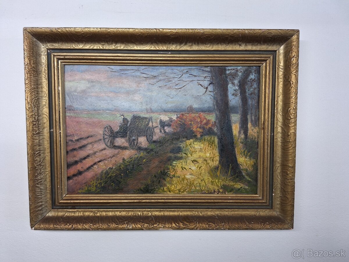 Starší obraz, olejomalba na kartonu. Podepsaný malíř V.Budka. rozměr včetně rámu je 47x35 cm. Dohoda