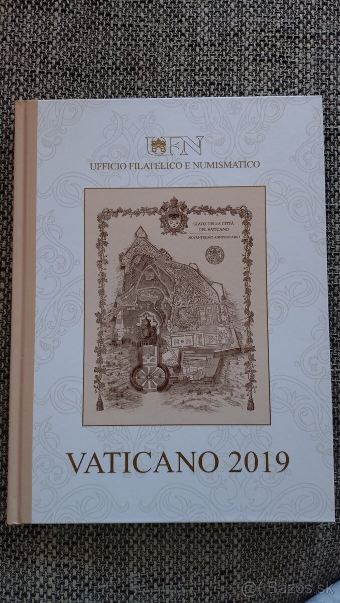 Predám filatelistickú (známky) ročenku štátu Vatikán 2019. Sú v nej všetky vydané známky, pečiatky a iné za rok 2019 (zoznam na fotke). Celková nominálna hodnota známok a pohľadníc 72€. Stav: nové. Sériové číslo 0399.