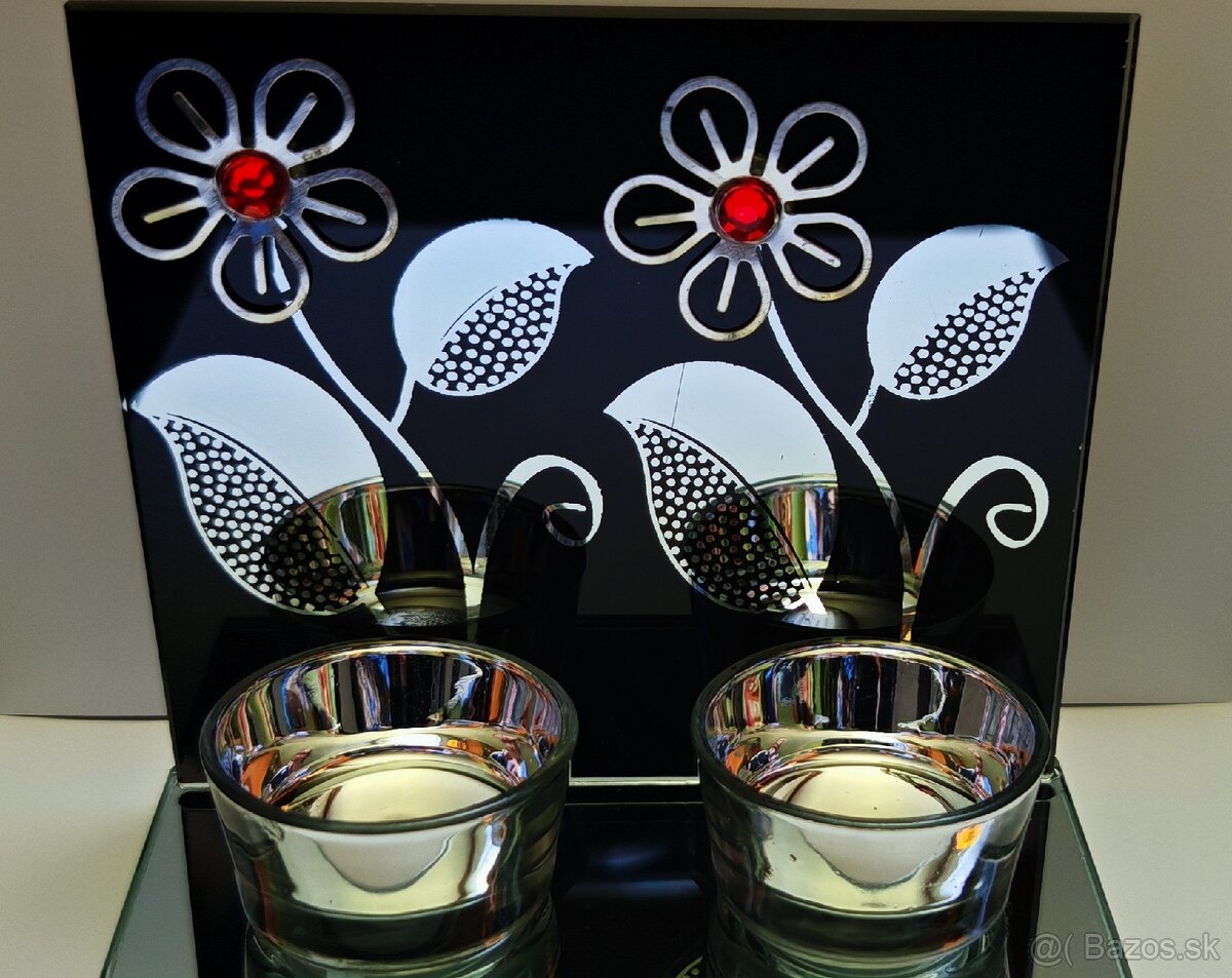 Predám nový, nerozbalený, len kvôli foteniu.Sklenený svietnik na 2 čajové sviečky. Je sklenený a zrkadlový. Podstava je zrkadlo.