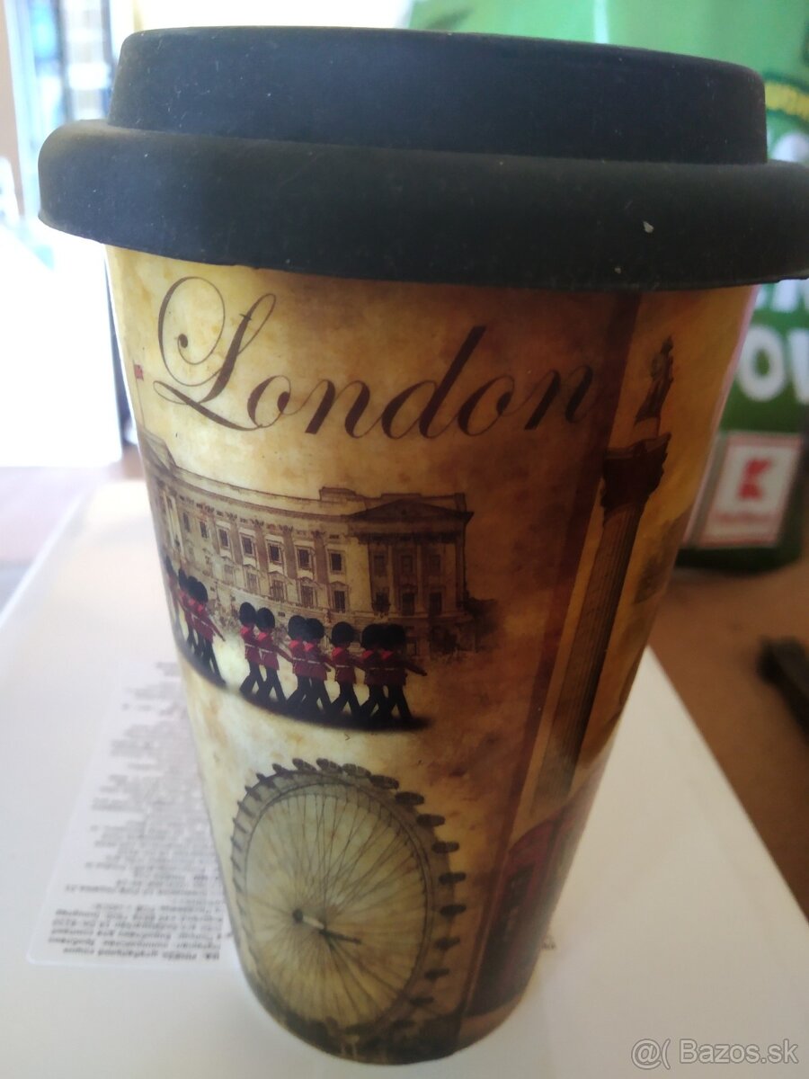 veľmi pekný keramický termo pohár so silikonovým vrchnákom, obsah 2,5dcl