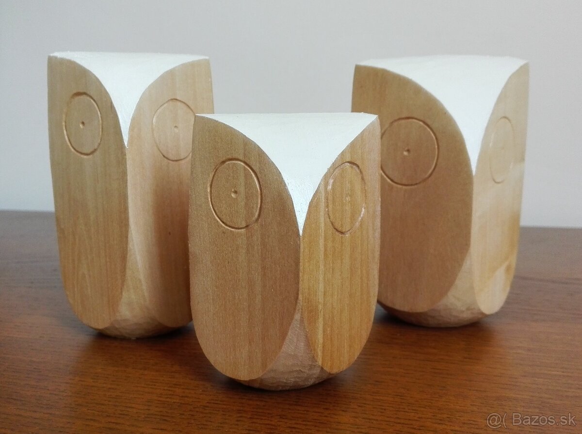 Predám tri sovy z lipového dreva ručne vyrezané. Rozmery dekorácie: výška od 9 cm (najmenšia) do 11 cm (najväčšia). Pošlem na dobierku alebo osobný odber v BA podľa dohody. Cena je spolu za tri sovy.