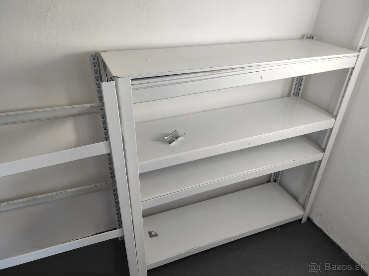 biely regál 100x30 cm, max.výška 198 cm - dá sa ľubovoľne rozdeliť, modrý regál bez vnútorných políc 198x25 cm - 4 ks, 161x36 cm - 4 ks, ďalej ponúkam kovový stojan s priemerom 22 cm a výškou 41,5 cm, 2x platne na sporák s priemerom 22 cm.