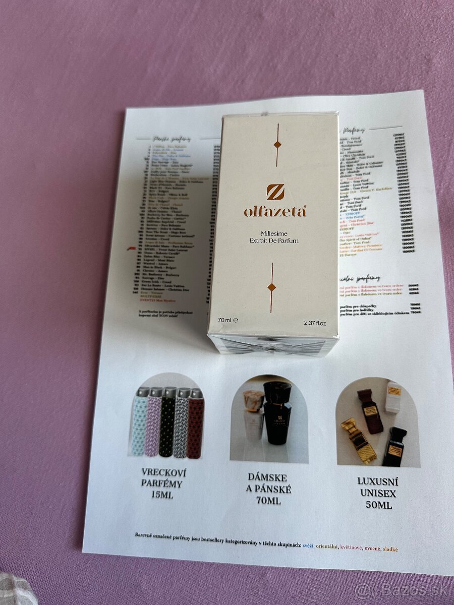 koncentrované - obsahujú 30% parfumovej esencie, čo je najvyššia možná intenzita parfému s najdlhšim trvanim. Parfémová esencia vydrží voňať 8-10 hodín, čo je raz toľko ako klasické parfémové vody.Zoznam parfemob zašlem na vyžiadanie