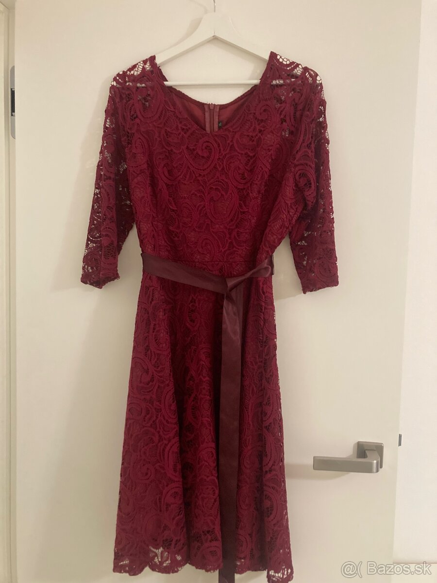 Dámske čipkové šaty vo veľkosti XL.Farba bordová.Šaty sú v peknom stave.Osobný odber,platba vopred.Kontaktujte ma na mail.