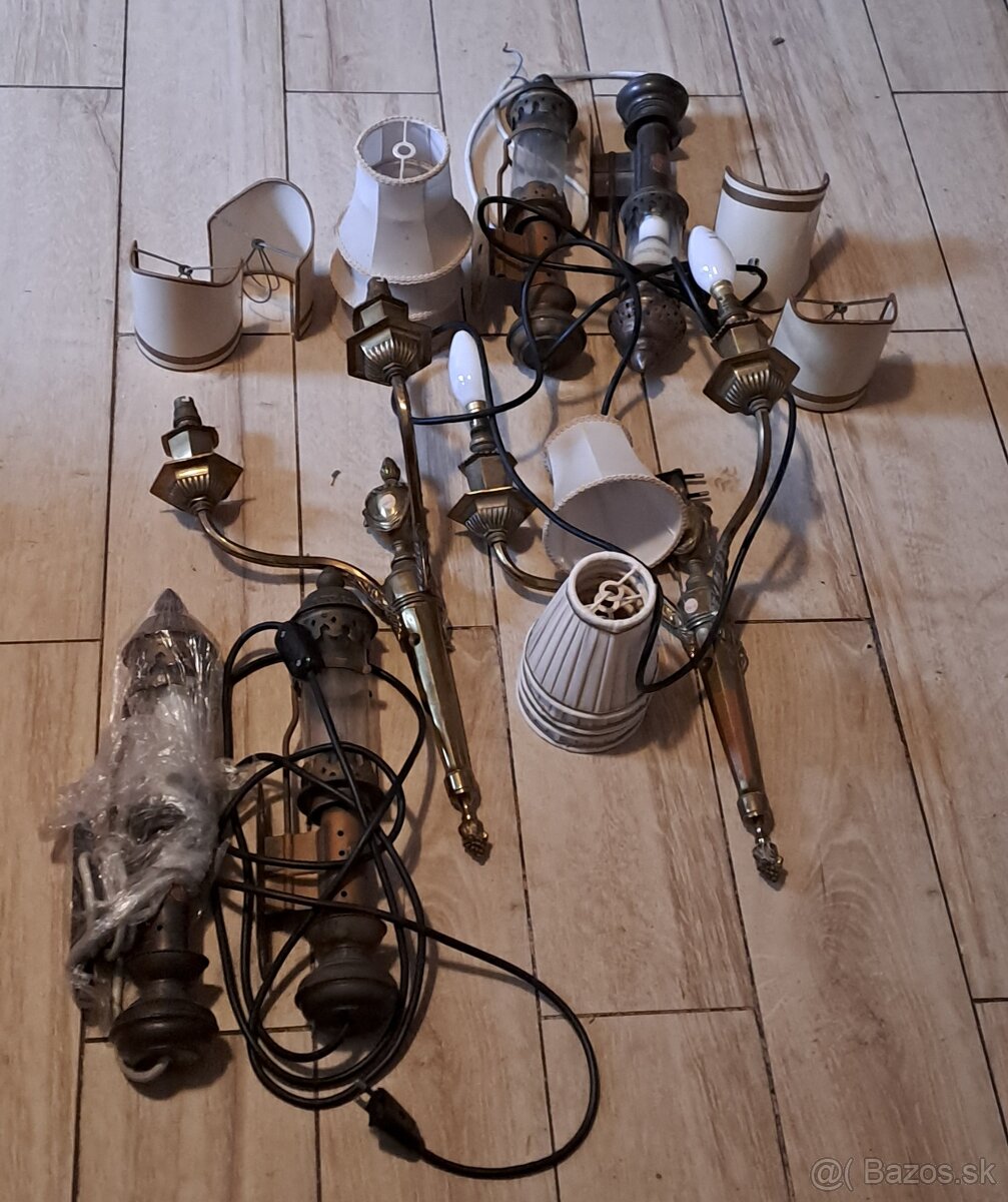 Predám nástenné mosadzné lampy 5ks, aj s prislušenstvom (tienidlá),cena 150e (30€zakus). Okolie Komárno. Tel.0905211438