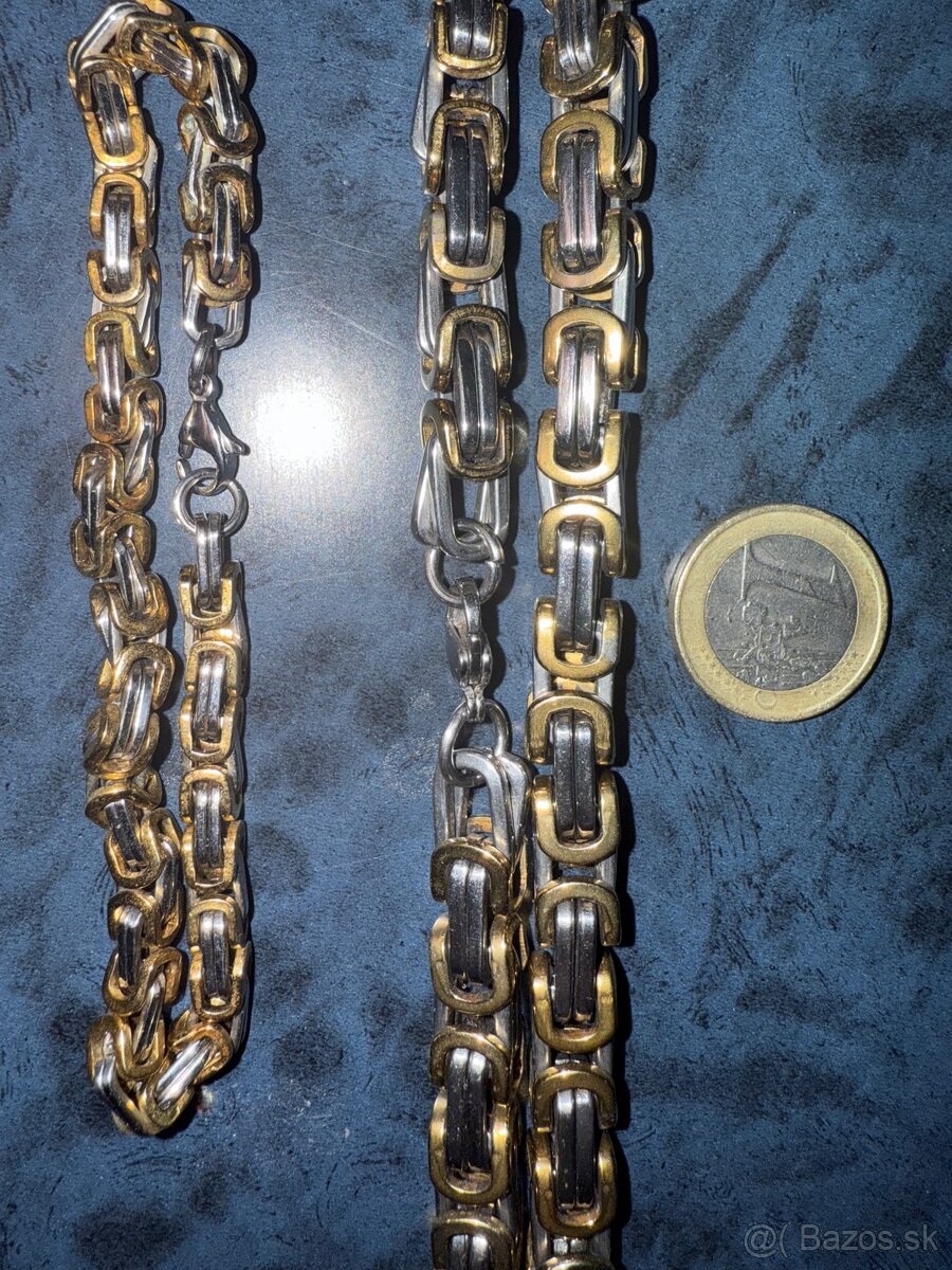 Predám krásnu retiazku a náramok z chirurgickej ocele s pekným kráľovským vzorom. Dlžka retiazky je 57cm a náramku je 21cm.