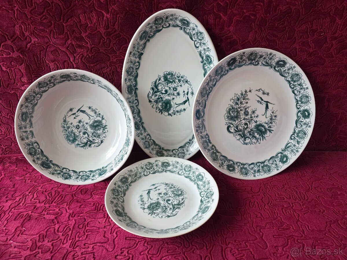 Servirovacie taniere 3ks a jeden hlboký. Ak nie je možný osobný odber, posielam poštou. Prí kúpe tovaru nad 30eur a platbe na účet poštovné zdarma. Balím spoľahlivo. KLIK NA MOJ NICK.