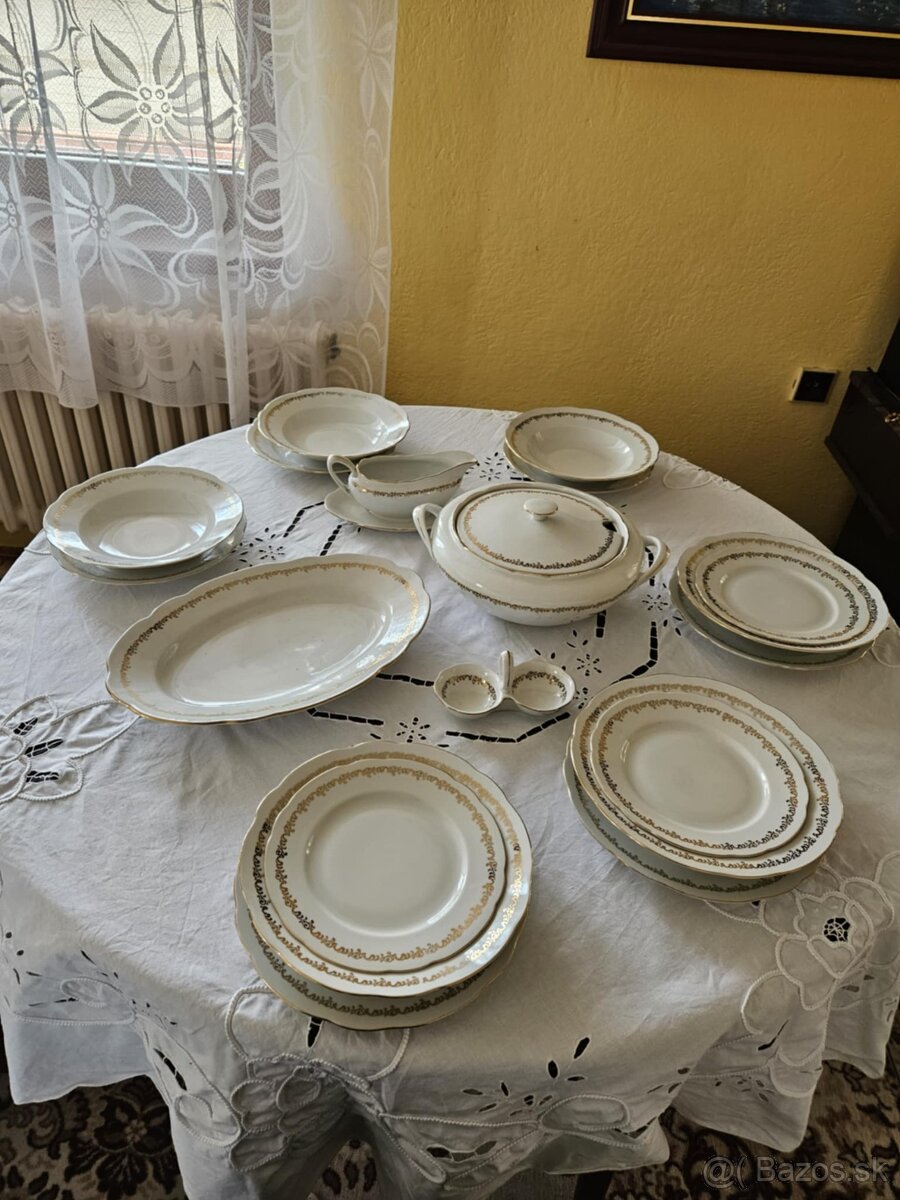 Súprava nie je úplná. Chýba: 1ks hlboký tanier,1ks plytký tanier, 1ks malý tanier, 1ks kompótová miska. Viď foto.