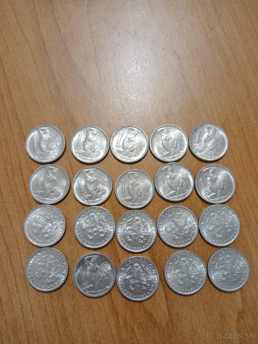 Ponúkam na predaj mince z obdobia ČSR. K dispozícii cca 460 kusov. Všetky v hodnote 1 koruna. Rok 1951-1952. Cena za 1 ks je 0,50€ (v prípade odberu viac ks dohoda na cene možná).