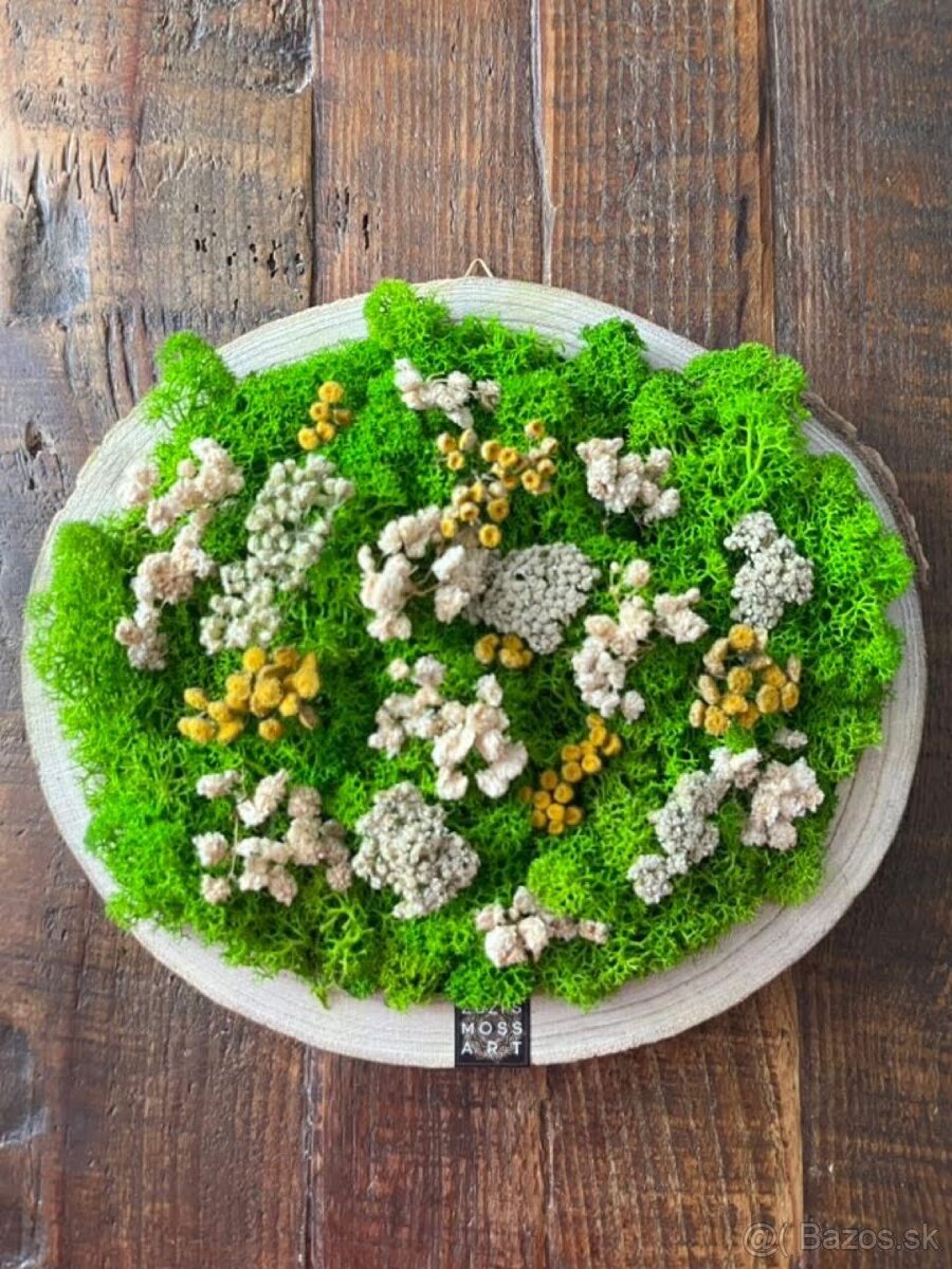 Predám ručne vyrobený machový obraz zo stabilizovaného machu, ktorý nepotrebuje žiadnu ďalšiu starostlivosť a údržbu. Priemer obrazu je 25 cm