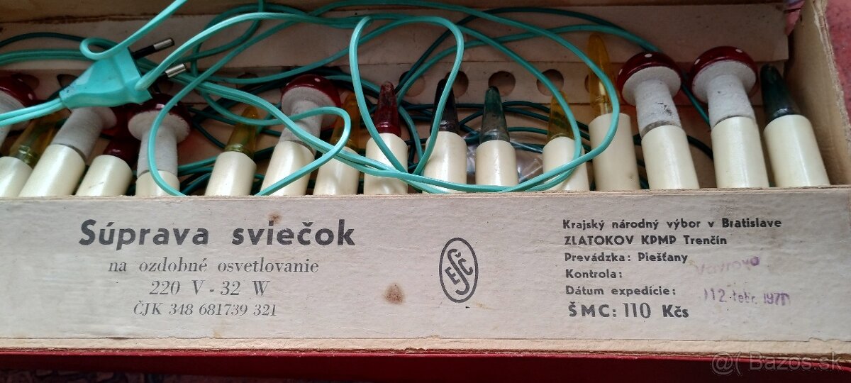 Predám 53ročné vianočné osvetlenie z roku 1971, všetky žiarovky svietia.45€.