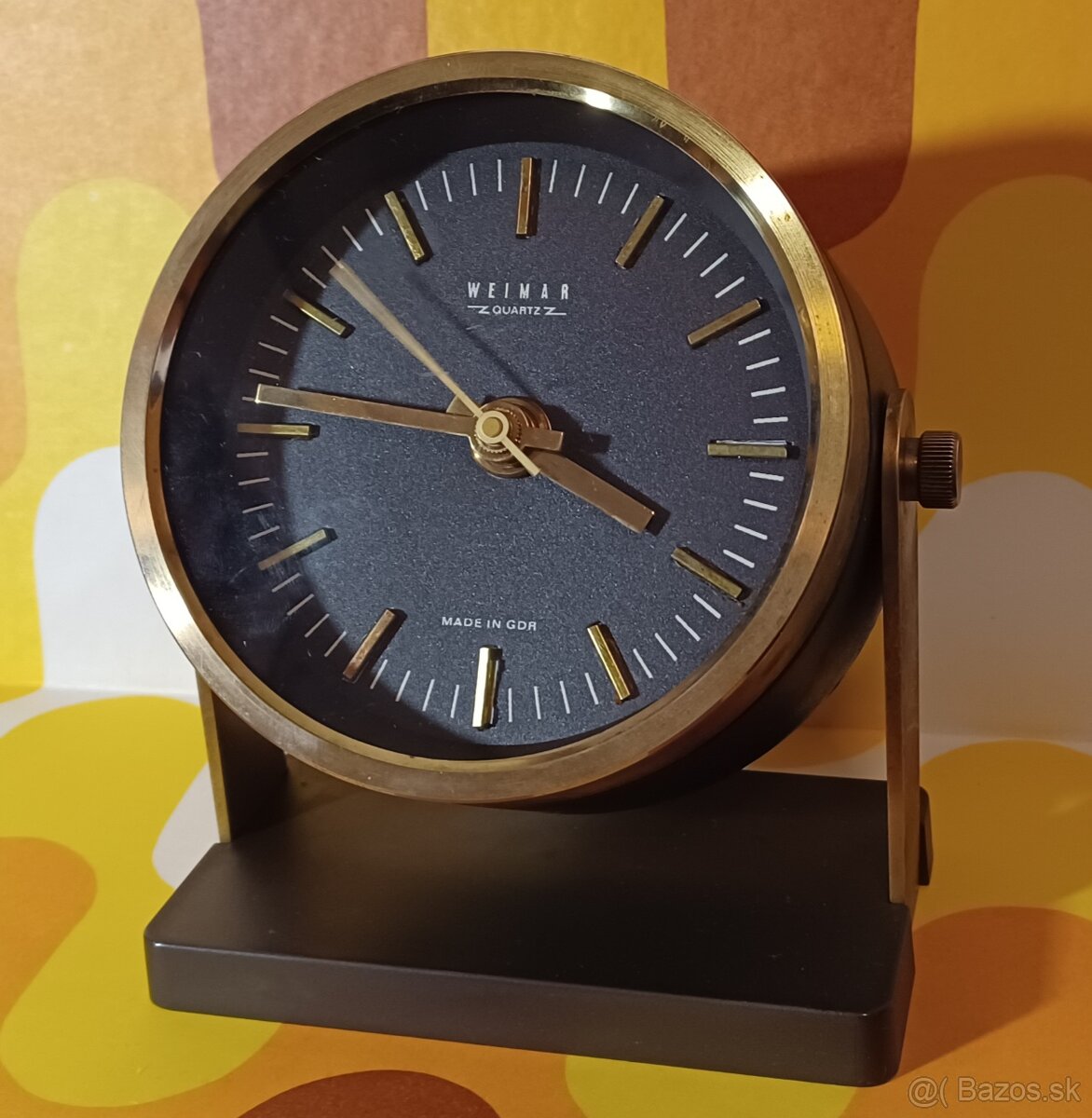 Staré Nemecké quartzové hodiny Weimar, top nadčasový dizajn 70te roky,, pôvodný plne funkčný strojček, materiál mosadz, plast, sklo, výška 15 cm, poskytujem záruku 6 mesiacov na chod hodín. Osobne Košice poštou po úhrade. Ďakujem.