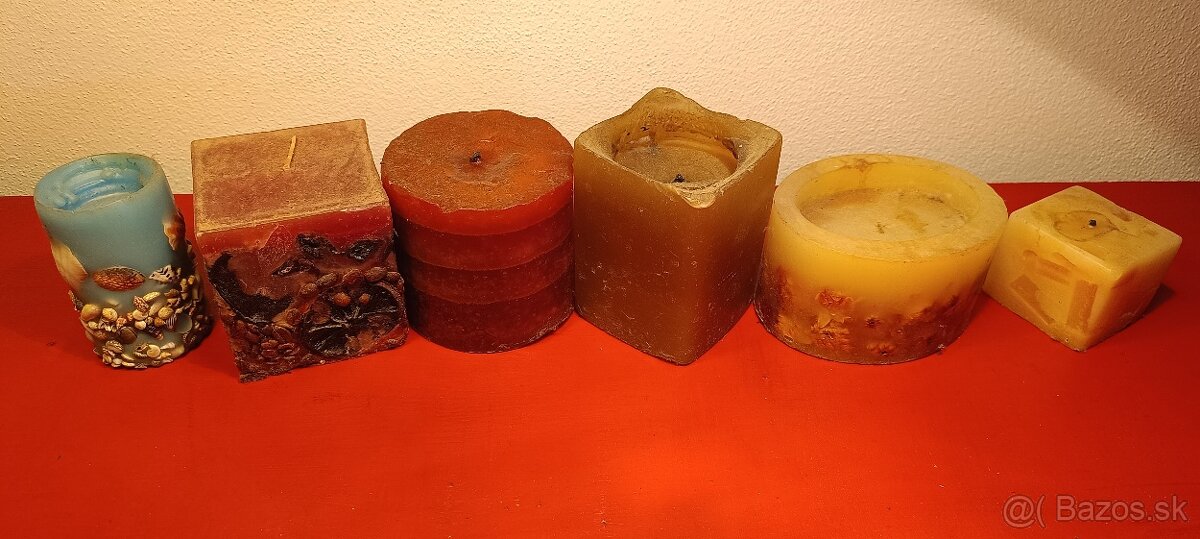 Okrasné sviečky - 6 ks, niektoré boli aj zapálené.