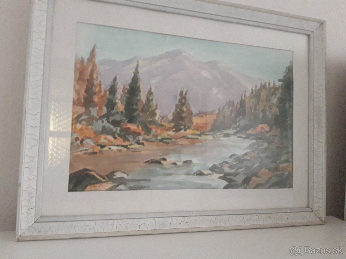 Obraz č.12 Horský potok AQUAREL-sklo, rozmer 56x42. Len osobný odber.