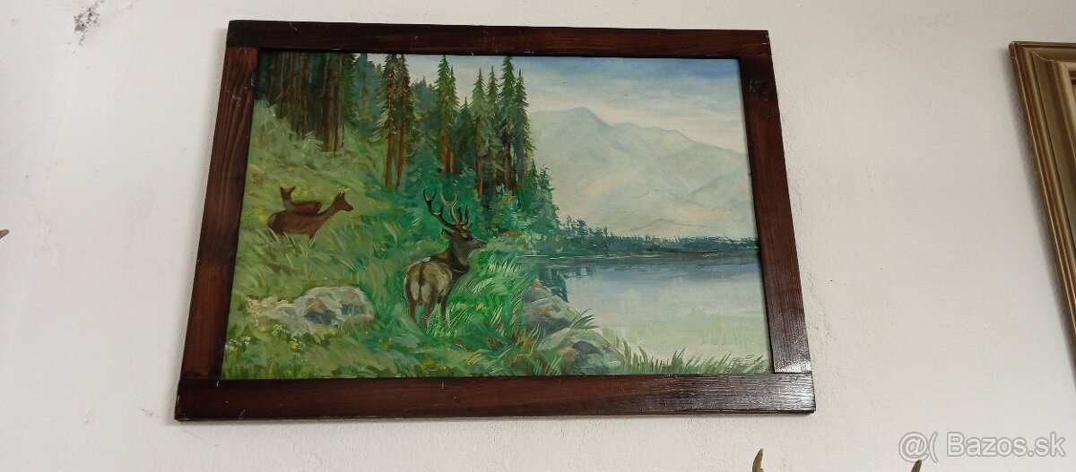 Obraz jelen,polovníctvo,trofej.