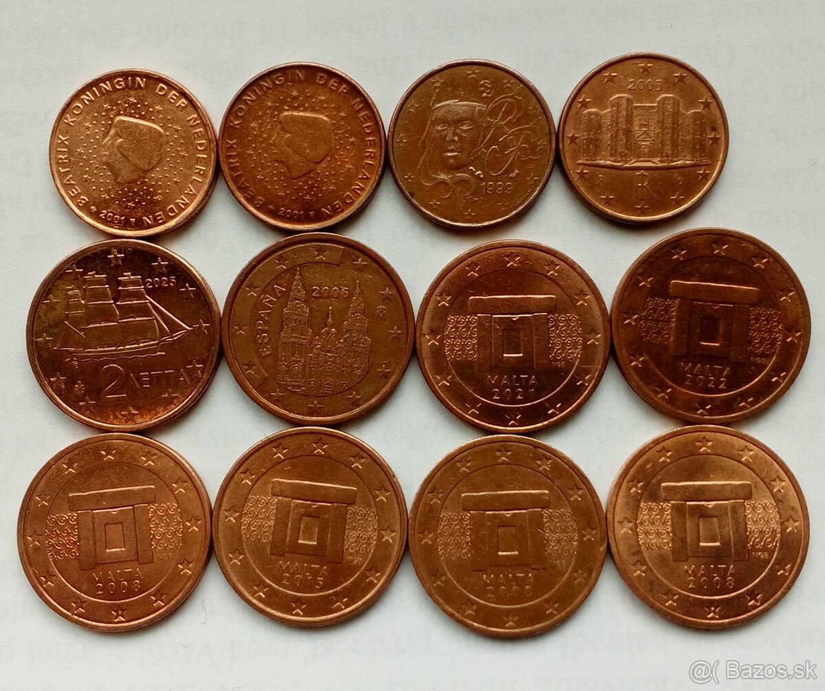 Vymením 1 a 2 centové mince za iné, ktoré ešte nemám.