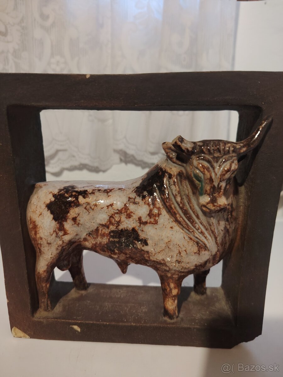 Predám starú dekoráciu.Byk v ráme