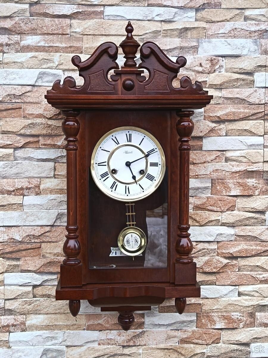 Nastenne hodiny - [2.2. 2026]Predam krásne starožitne nastenne naťahovacie kyvadlove 3gonk plne funkčne hodiny. Drevené puzdro.