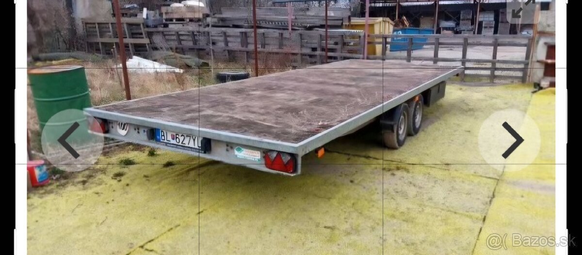 Predam prives plosina dl.620cm š.230cm celkova hmotnost 2000kg moznost tahat za osobnym autom. Nove pneu vsetky 5ks. Bude treba casom menit dosky ale deravy nieje.