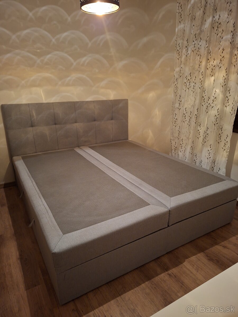 Predám manželskú postel,sivá s úlozným pristorom.Je čistá,nepreležaná,použivali sme toper.Jediná chyba je,že pri vstávaní z nej, na jednej strane vŕgne struna,ktorá slúži na otváranie úložneho priestoru.Neskúšali sme to opraviť,takže možno sa to bude dať.Dôvod predaja,potrebujeme väčšiu. OSOBNÝ ODBER.