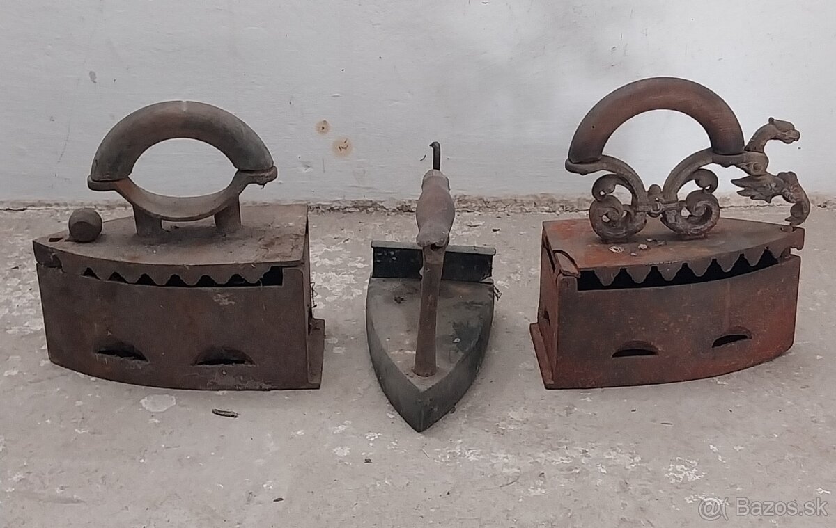 Krajné žehličky sa v minulosti otvorili, vložili sa do nich horúce uhlíky a mohli sa používať, stredná sa zahriala na peci.