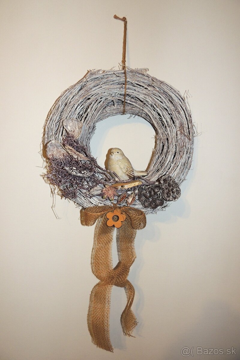 Ponúkam na predaj ozdobný veniec s prútia, v strede ktorého je vtáčik.