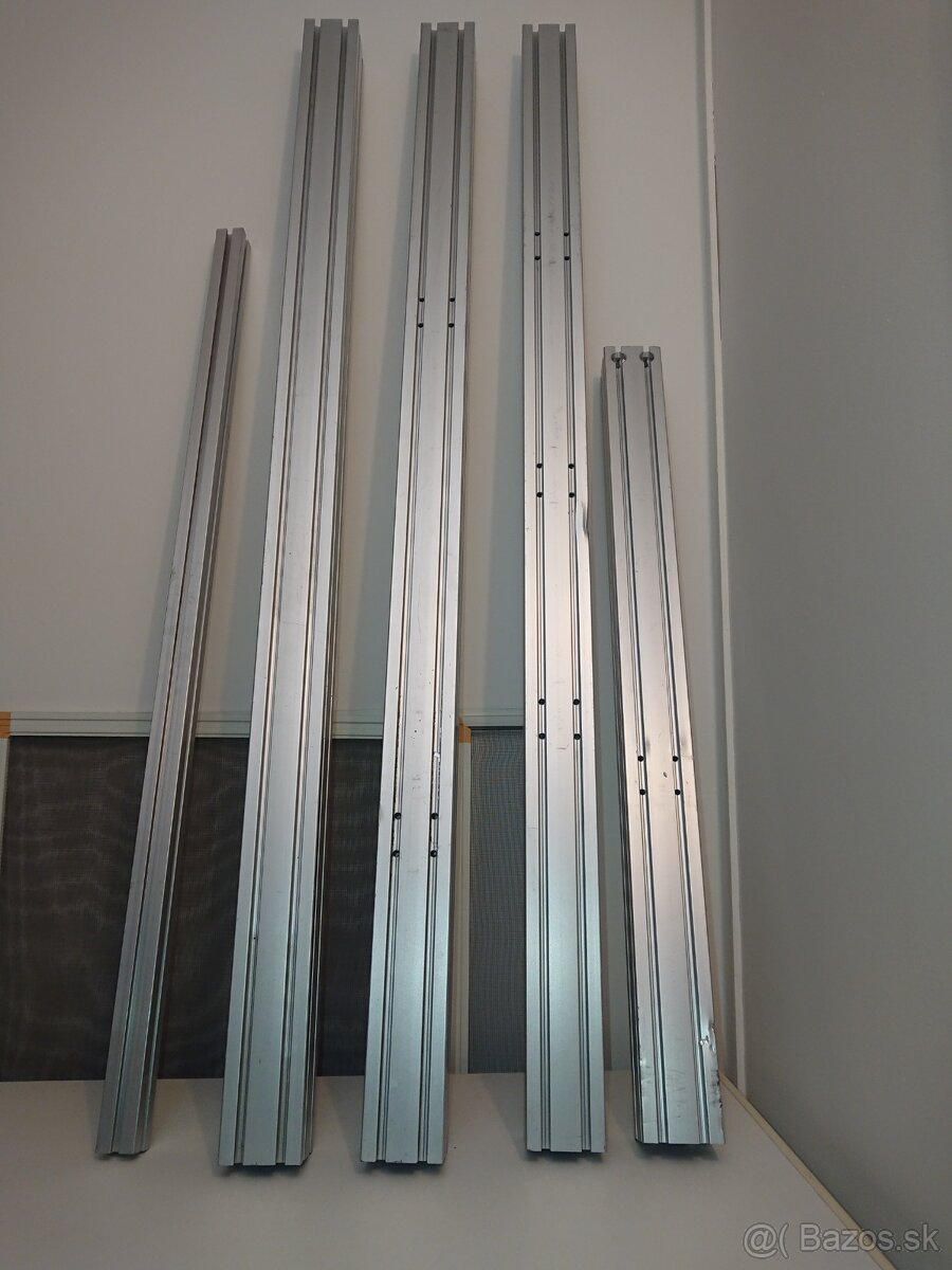 Predám použité ALU profily, mix rozmerov 4040, 4080, 8080 s 8mm drážkami. Len čo je na fotkách. Pár profilov je trošku zdefornovaných, no vždy je minimálne jedna strana s drážkami použiteľná. Nie všetky sú pekne odrezané.