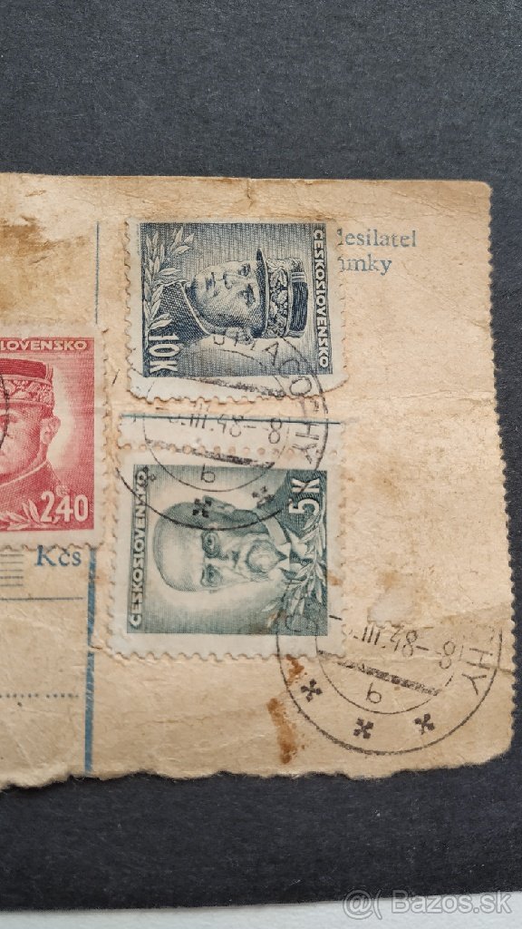 Predám poštové známky s pečiatkou z roku 1948, použité, nalepené. Stav ako na foto.