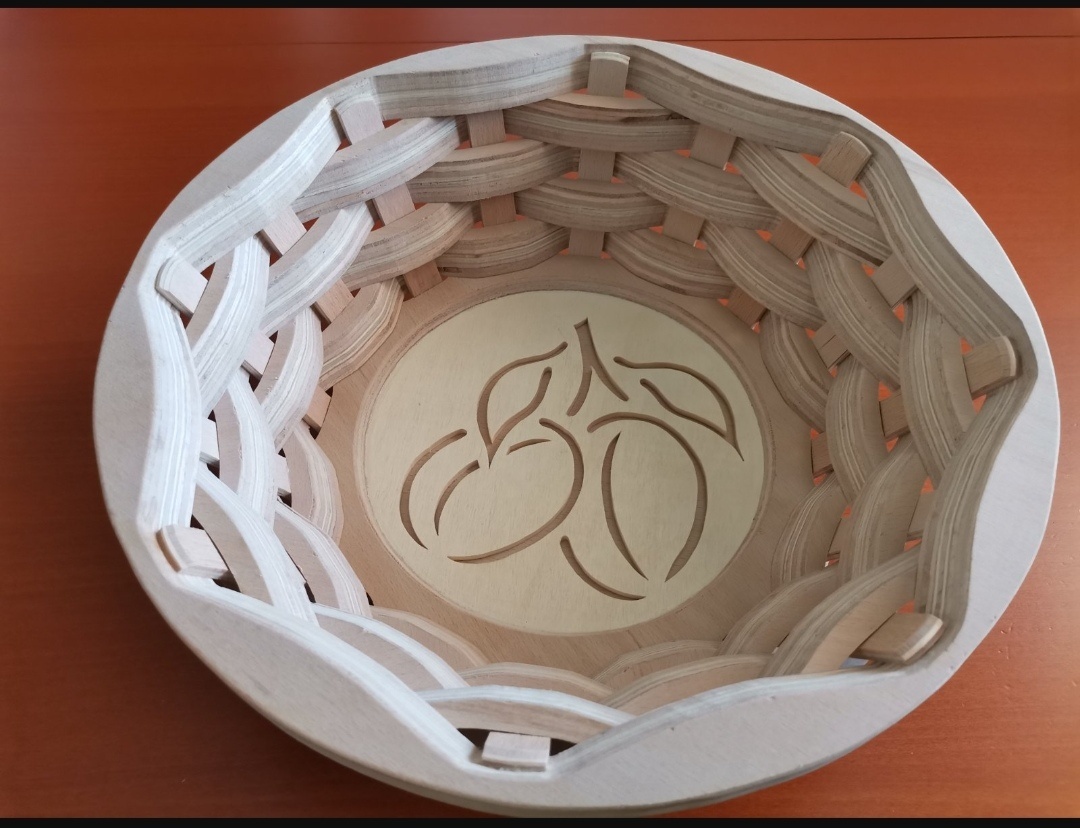 Ponúkam na predaj ručne vyrezávaný košík s motívom včely, sliviek, jablka, hrušky. Vhodný aj ako vianočný darček.