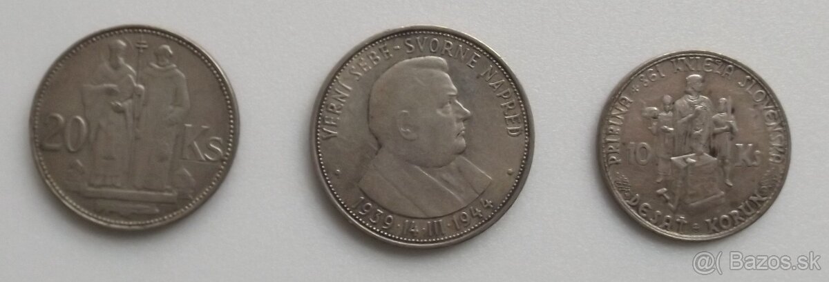 Predám mince z obdobia Slovenského štátu, Tiso i iné. Od 15 € za kus.
