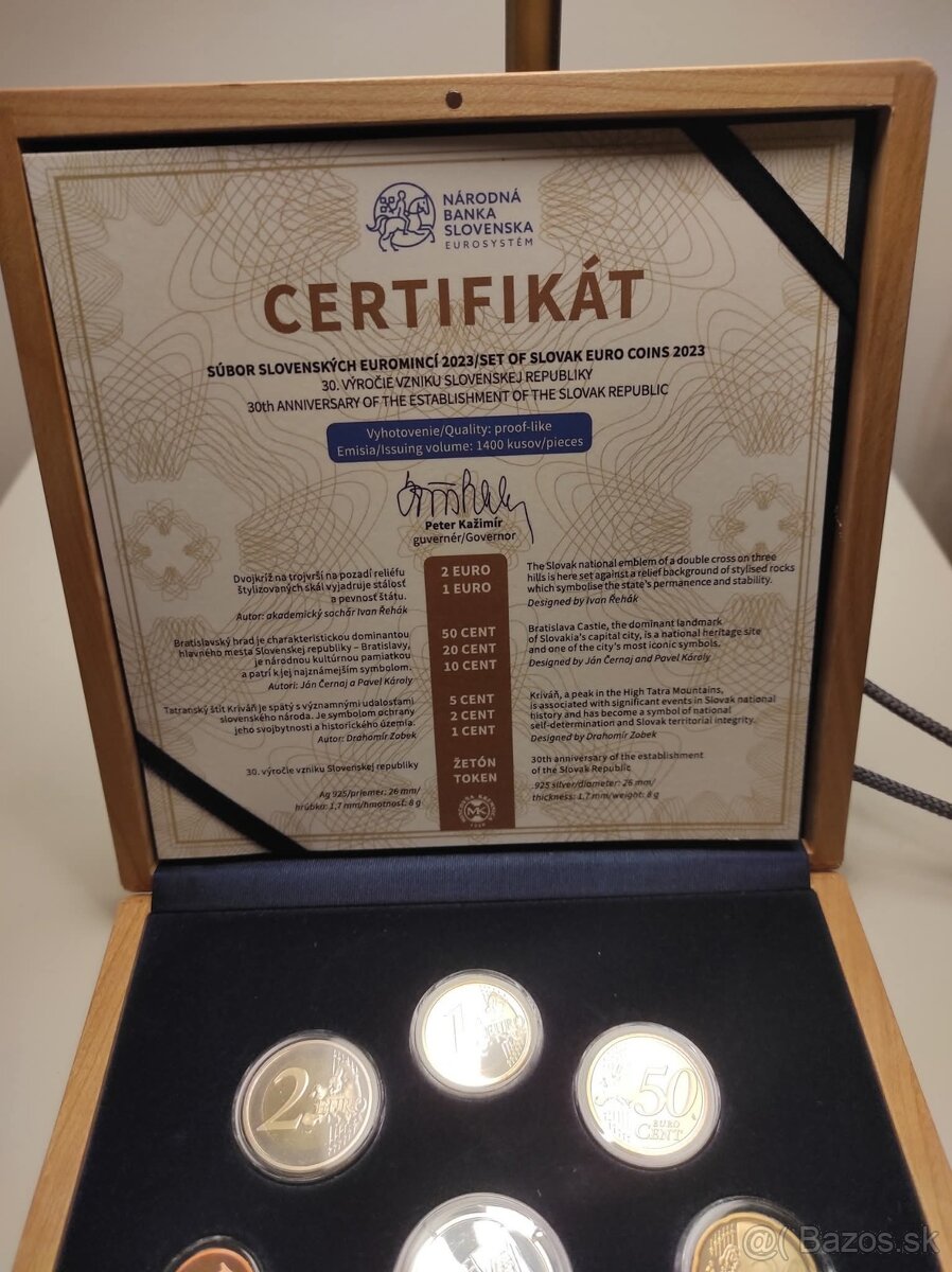 Sada slovenských euromici a strieborný žeton v luxusnej drevennej kazete