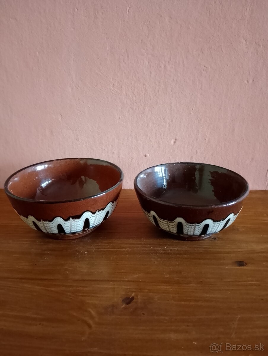 s typickým hnedým glazovaným povrchom a ozdobným vzorom, šírka 12cm a 11cm