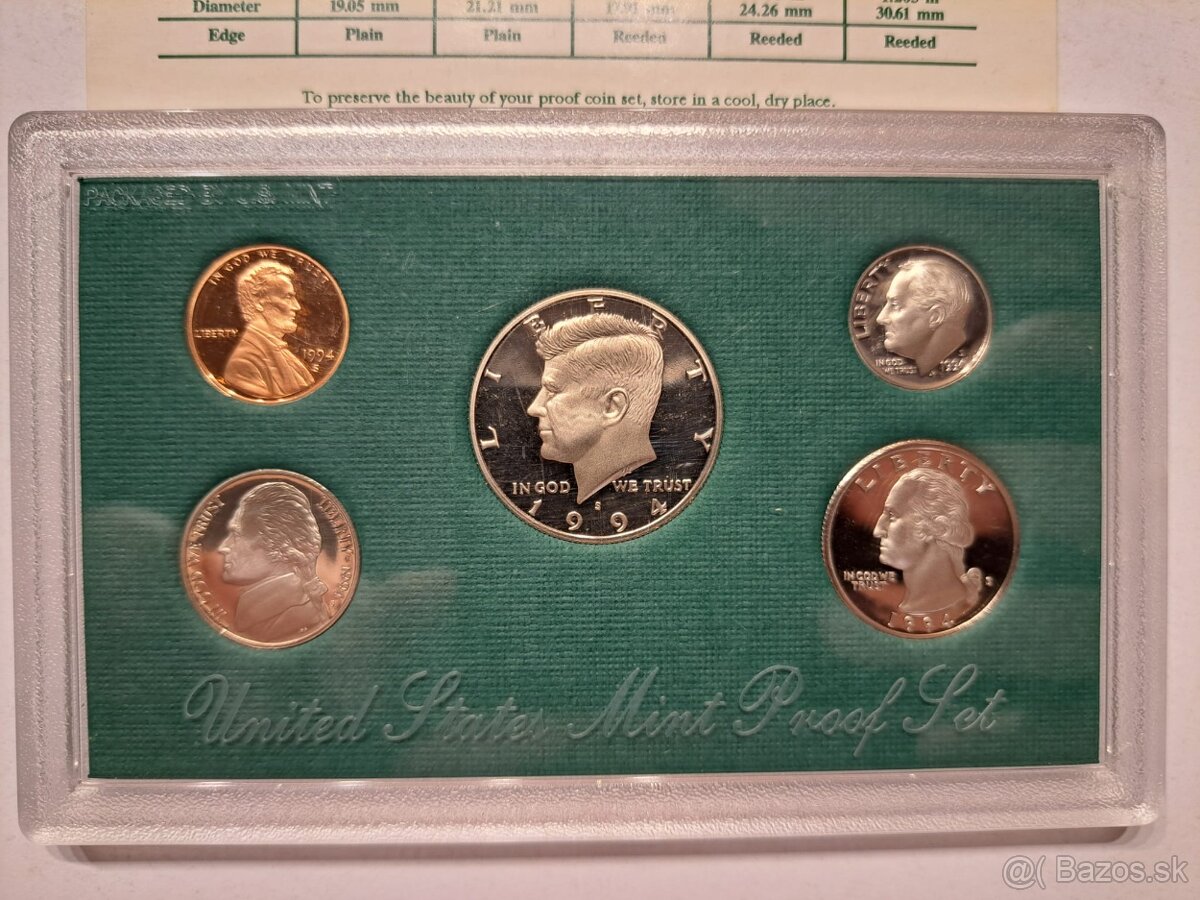 Predám sady mincí USA, ročníky 1976, 1985 a 1994 vo vyhotovení PROOF.