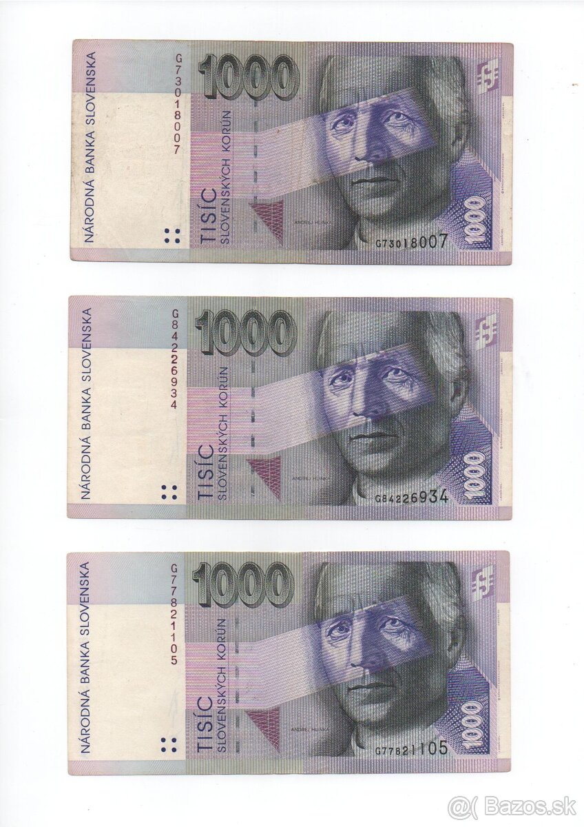 Ponúkam na predaj 5 kusov bankoviek v hodnote 1000sk. Stav totožný na fotkách - skenoch bankoviek.