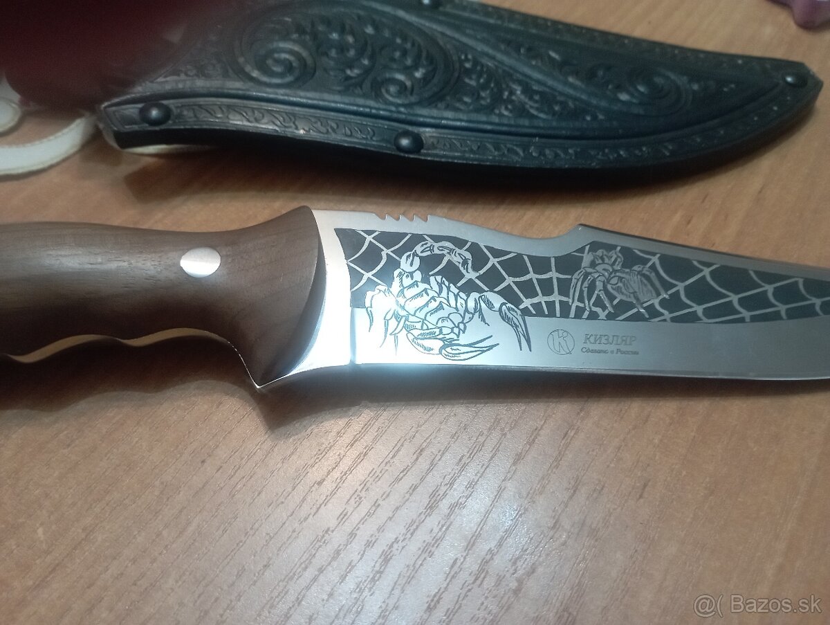 Lovecký nôž ktorý odovzdával Kaukazským vojakom za chrabrosť vo vojne v Čečensku. Celková dĺžka 305mm, dĺžka čepele 167 mm , hrúbka čepele 3,6 mm, šírka čepele 36mm, materiál oceľ alebo import analóg, Materiál kazašský orech, puzdro: prírodná koža.cena 150 .