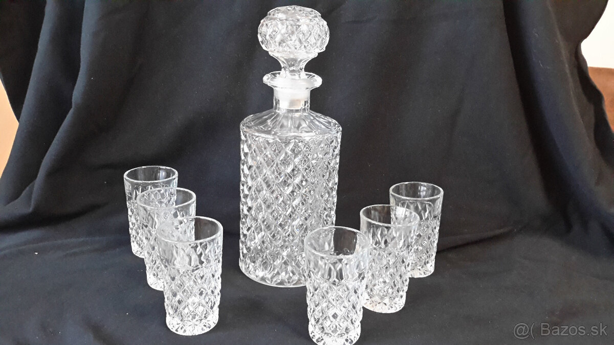 retro sada na whisky karafa so zabrúsenou zátkou a 6 pohárov objem 100 ml, všetko bez poškodenia