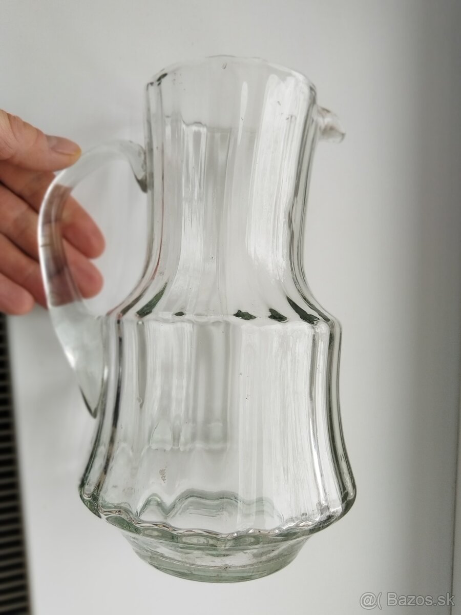 Skleneny dzban na vino. - [27.1. 2026]Neposkodeny dzban na vino + 2 pohariky. Kontakt mailom. Kurierom neposielam.