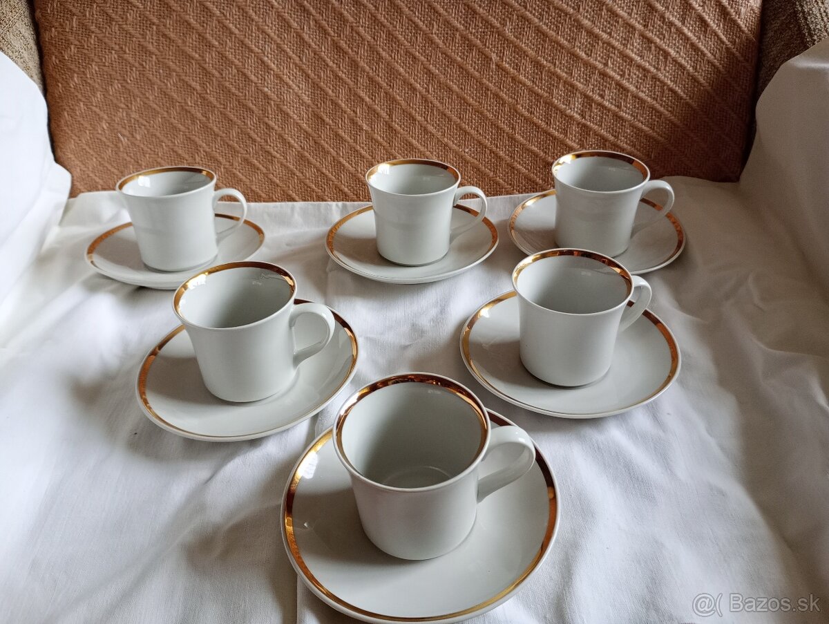 Predám bielo-zlatú kávovú súpravu, 6 malých šáločiek + 6 ks podšáliek.