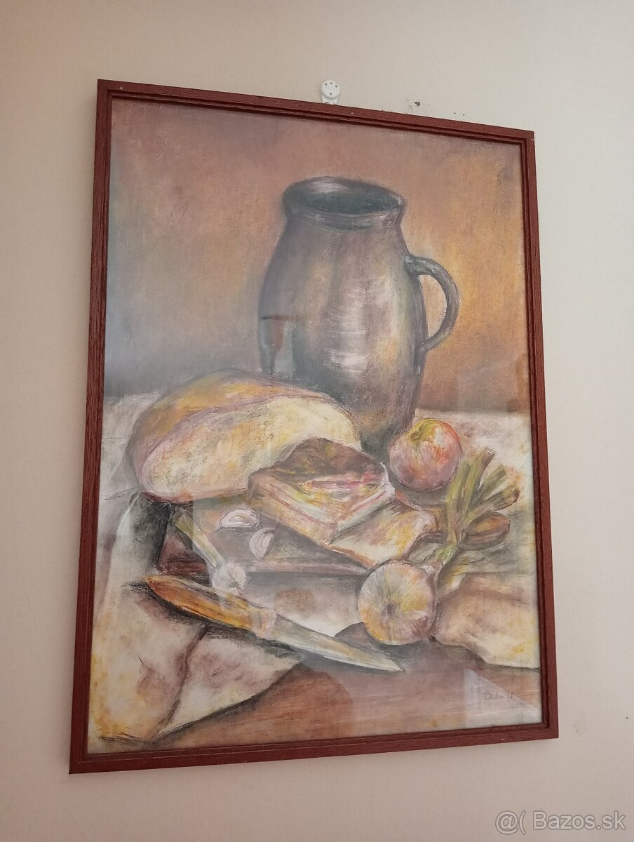 Predám obraz, originál maľba - kresba na papieri pod sklom. Technika kombinovaná, tempera, suchý pastel. Drevený rám. Rozmery 43 x 31 cm. Cena: 20 eur/kus. Spolu alebo samostatne.