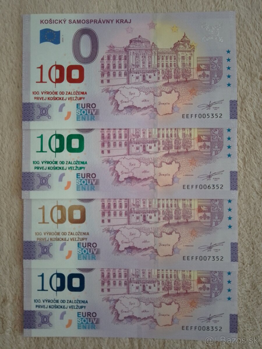 Predávam sadu 0 bankoviek Košického samosprávneho kraja, ktorý oslávil 100. výročie od prvého zasadnutia zastupiteľstva Košickej veľžupy: