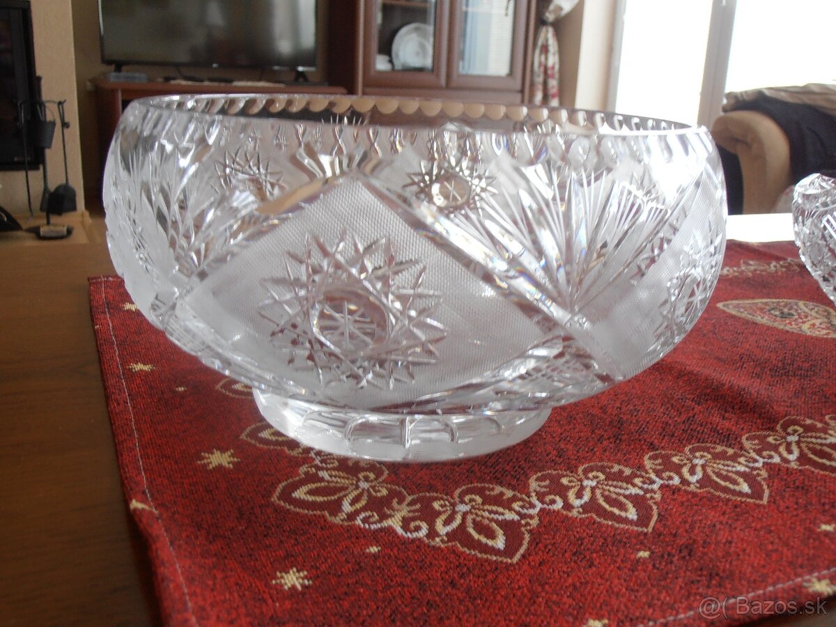 Predám krystálovú misu,košik-vitrínový stav,kyštálové doplnky,starožitnú šálku