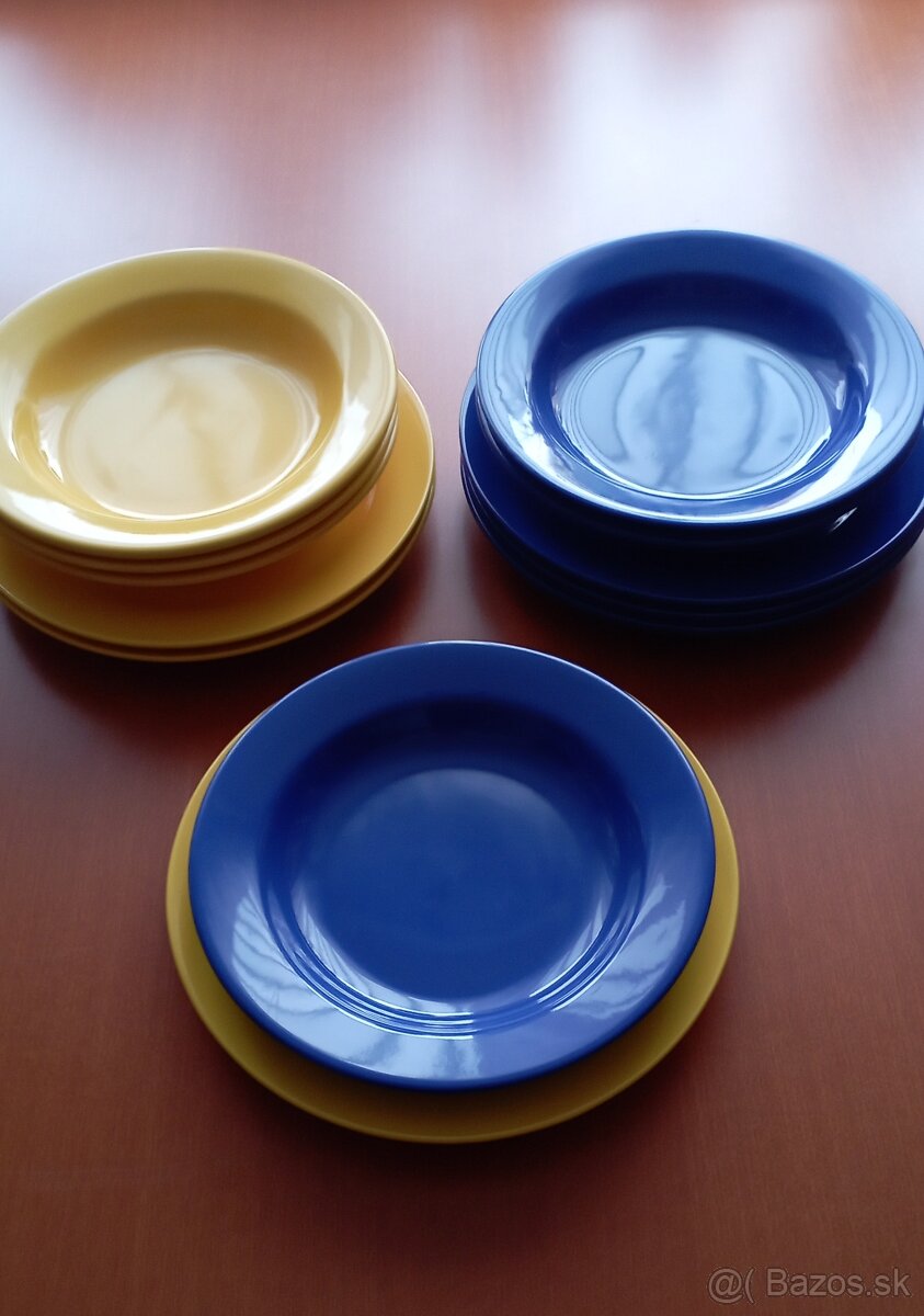6 ks plytké, 6 ks hlboké, farba modrá a žltá. Cena 20 eur+ poštovné