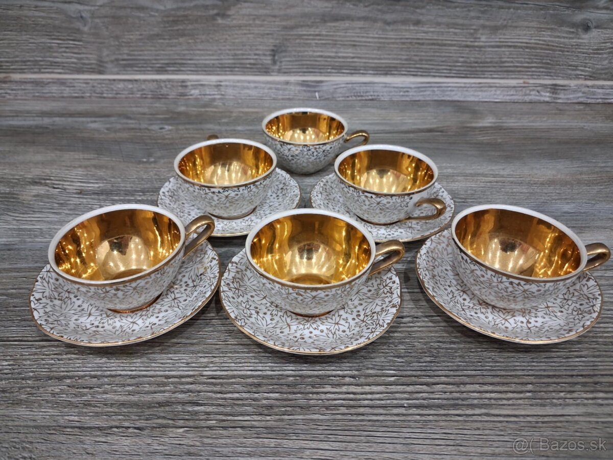 Ide o retro porcelánovú šálku a podšálku zdobenú zlatom, výrobcu MZ Stará Role z obdobia 1940-1960.