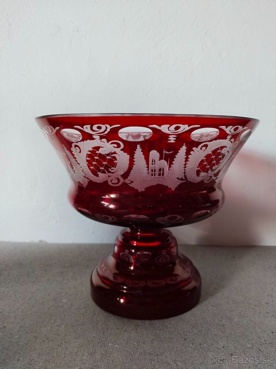 Jde o krásný příklad evropského, pravděpodobně českého, dekorativního skla. Není to jen mísa; je to umělecké dílo, které vypráví příběh éry romantismu, propracovaného řemeslného zpracování a uměleckého obrození. Bude nádherným doplněním jakékoli sbírky historického skla nebo úžasným dekorativním kouskem do domácnosti.